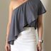 Blusa maravilhosa toda volumosa com babado assimétrico e longo, confeccionada em 1 ombro em tecido de viscolinho e caimento soltinho. Possui elástico em todo busto com movimento e caimento lindo.